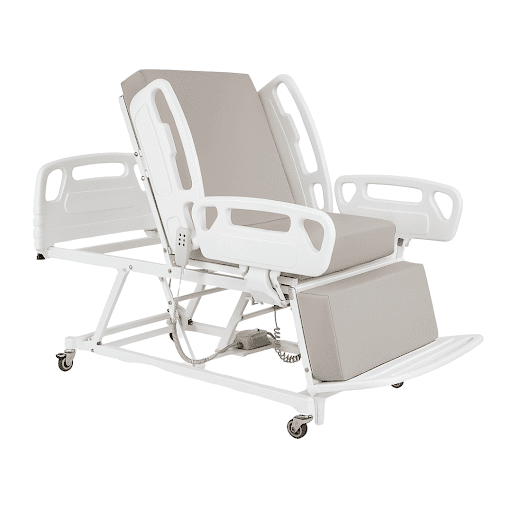 Cama poltrona Evolution Pilati com 4 movimentos : cabeceira, peseira, altura e poltrona. Acompanha cabeceira, peseira e grades de PEAD.